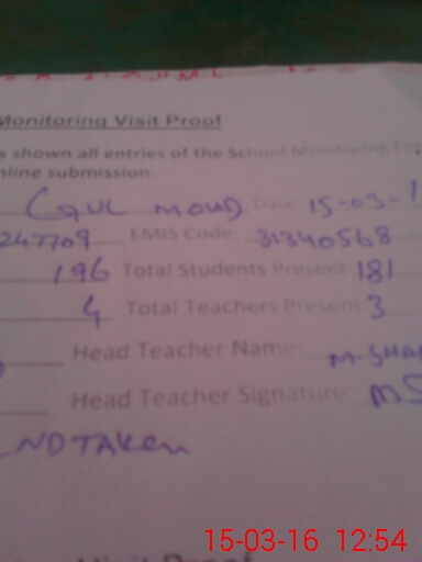 | EMIS Code: 31340568 | Name of School: GMPS GUL MUHAMMAD | |||
