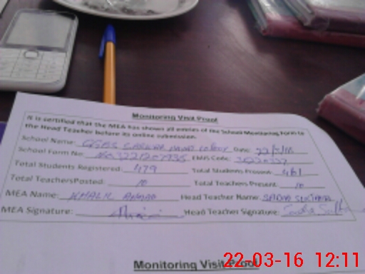 | Attendance Register | Head Teacher | MEA with School | Visit Proof |