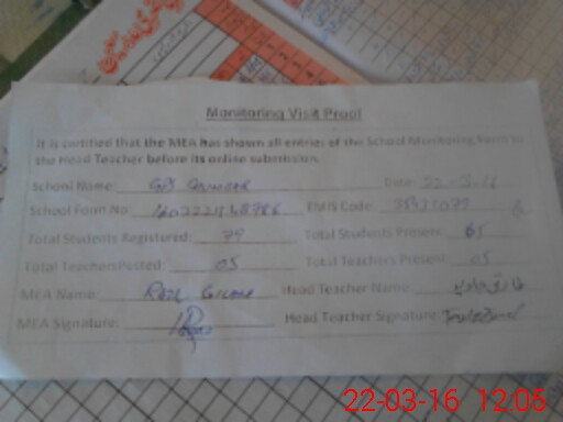 | Certified that this School was Inspected by the Undersigned MEA/DMO Today and the Information Stated Above is as Per Record. | |||||