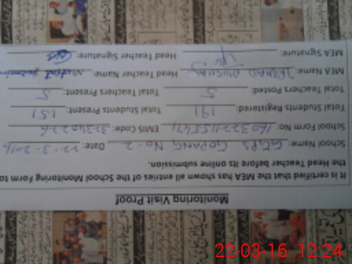 | Certified that this School was Inspected by the Undersigned MEA/DMO Today and the Information Stated Above is as Per Record. | |||||