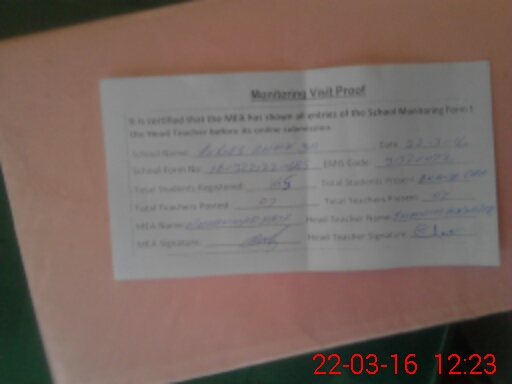 | Attendance Register | Head Teacher | MEA with School | Visit Proof |