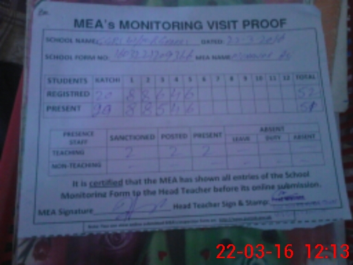 | Certified that this School was Inspected by the Undersigned MEA/DMO Today and the Information Stated Above is as Per Record. | |||||