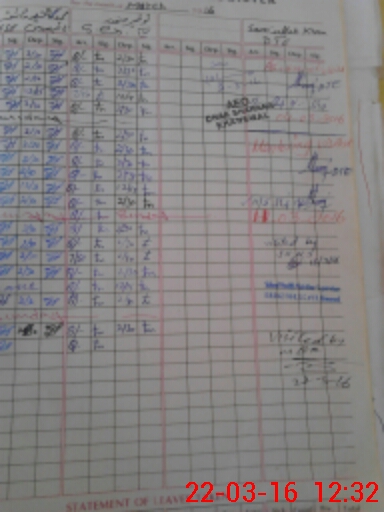 | CNIC | Full Name | Designation | R/C | Absence During Last Calender Month |