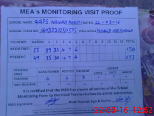 | EMIS Code: 36430383 | Name of School: GGPS NAWAB KHICHI, TULAMBA | |||