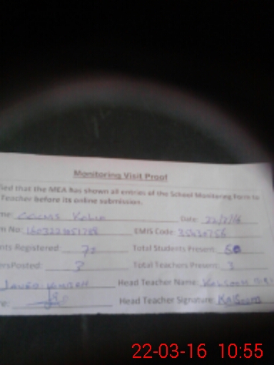 | Attendance Register | Head Teacher | MEA with School | Visit Proof |