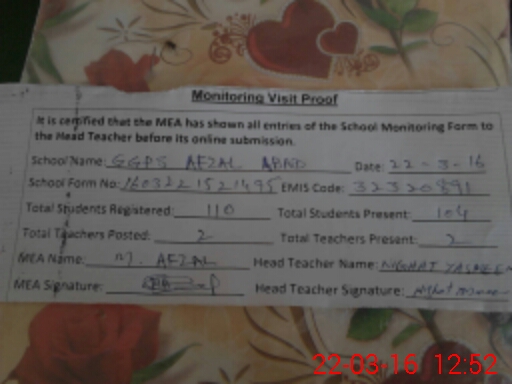| EMIS Code: 32320891 | Name of School: GGPS AFZAL ABAD | |||