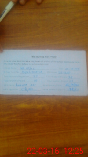 | Monitoring Date: 22-03-2016 | Start Time: 22-03-2016 12:14 PM | End Time: 22-03-2016 12:26 PM | Name of MEA: Am**** Al**** | |