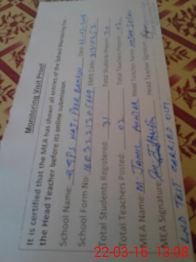 | Attendance Register | Head Teacher | MEA with School | Visit Proof |