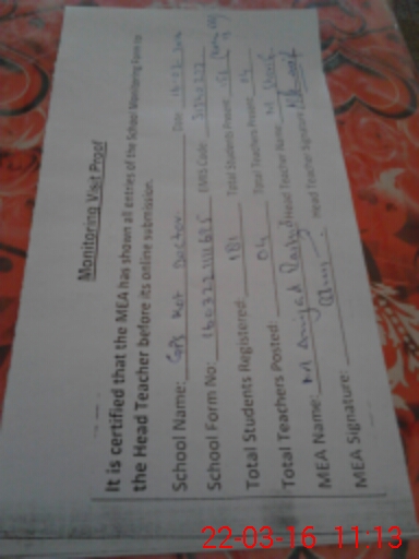 | Certified that this School was Inspected by the Undersigned MEA/DMO Today and the Information Stated Above is as Per Record. | |||||