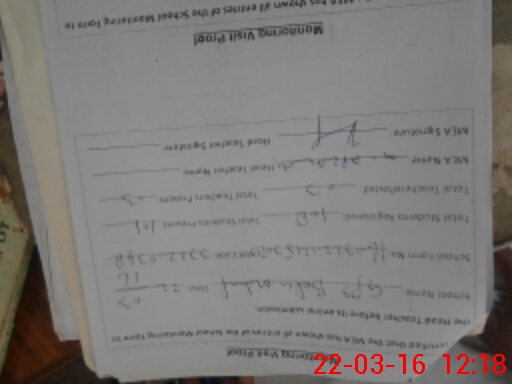 | Total no. of Classrooms: 2 No. of Classrooms Used for Teaching: 2 No. of Classrooms Storing Old Furniture, FTBs, etc: 0Comments if Any: 5Th class exam off |