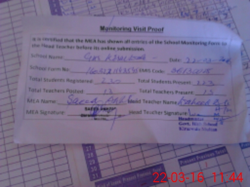 | Certified that this School was Inspected by the Undersigned MEA/DMO Today and the Information Stated Above is as Per Record. | |||||