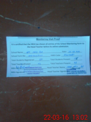 | Certified that this School was Inspected by the Undersigned MEA/DMO Today and the Information Stated Above is as Per Record. | |||||