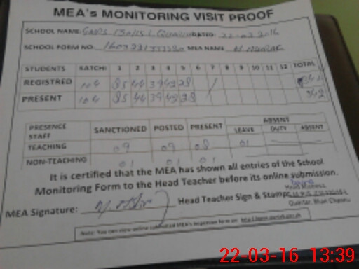 | Attendance Register | Head Teacher | MEA with School | Visit Proof |