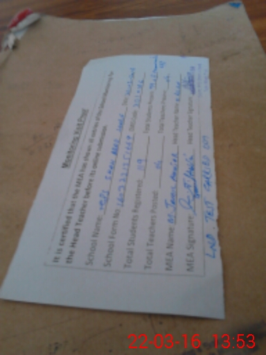 | Name: Mu**** Ir**** Designation: (School Headmaster's/Headmistress's) PST Phone/Cell Number: 03**** |