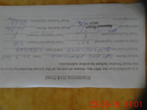 | Certified that this School was Inspected by the Undersigned MEA/DMO Today and the Information Stated Above is as Per Record. | |||||
