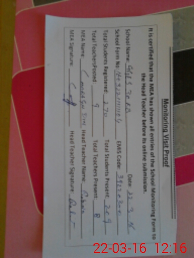 | Certified that this School was Inspected by the Undersigned MEA/DMO Today and the Information Stated Above is as Per Record. | |||||