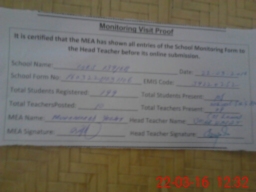 | Certified that this School was Inspected by the Undersigned MEA/DMO Today and the Information Stated Above is as Per Record. | |||||