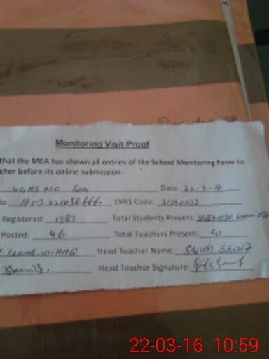 | Attendance Register | Head Teacher | MEA with School | Visit Proof |