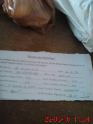 | Attendance Register | Head Teacher | MEA with School | Visit Proof |