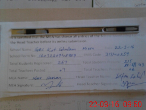 | EMIS Code: 31340259 | Name of School: GES KOT GHULAM MIRAN SHAH | |||
