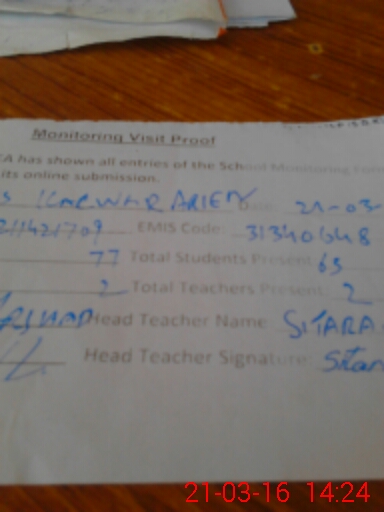 | Attendance Register | Head Teacher | MEA with School | Visit Proof |