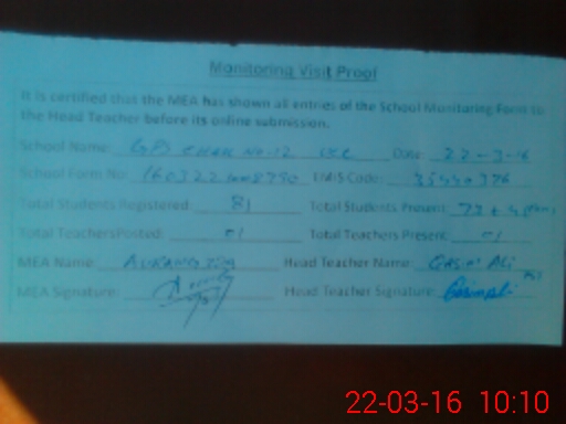 | EMIS Code: 35440376 | Name of School: GPS CHAK NO.12 UCC | |||