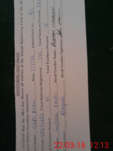| Name: AF**** NA**** Designation: (School Headmaster's/Headmistress's) PTC/JV Phone/Cell Number: 03**** |