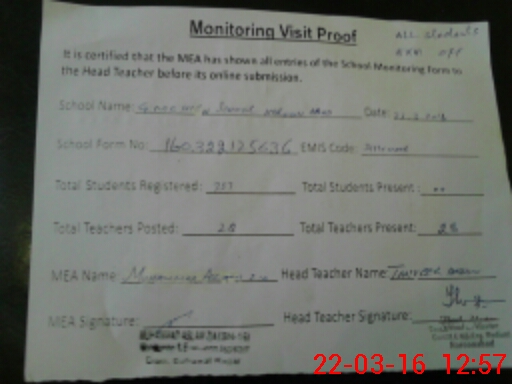 | Certified that this School was Inspected by the Undersigned MEA/DMO Today and the Information Stated Above is as Per Record. | |||||