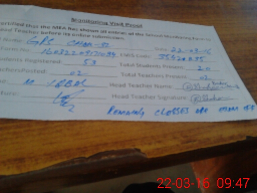 | Attendance Register | Head Teacher | MEA with School | Visit Proof |