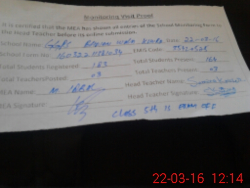 | Certified that this School was Inspected by the Undersigned MEA/DMO Today and the Information Stated Above is as Per Record. | |||||