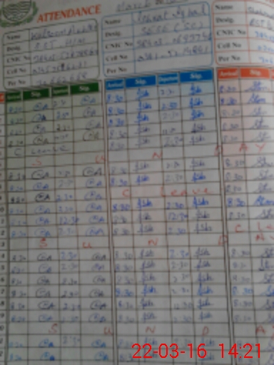 | CNIC | Full Name | Designation | R/C | Absence During Last Calender Month |