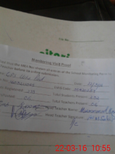 | Attendance Register | Head Teacher | MEA with School | Visit Proof |