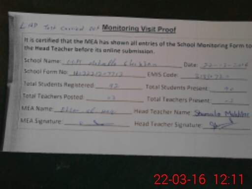 | Attendance Register | Head Teacher | MEA with School | Visit Proof |