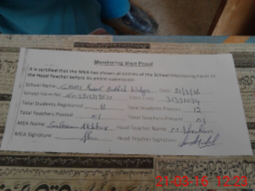 | Attendance Register | Head Teacher | MEA with School | Visit Proof |