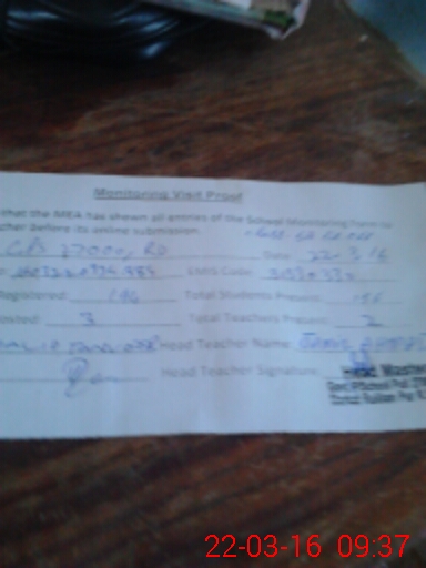 | Attendance Register | Head Teacher | MEA with School | Visit Proof |