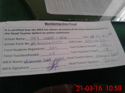 | EMIS Code: 36610032 | Name of School: GES CHAK WALA | |||