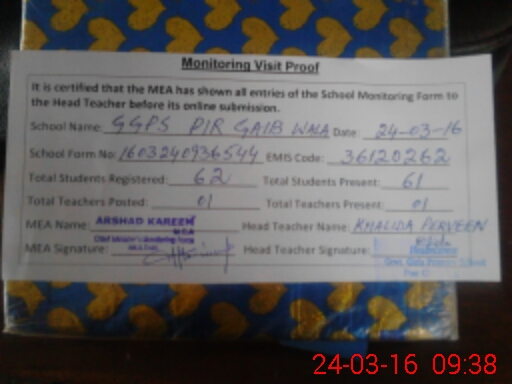 | EMIS Code: 36120262 | Name of School: GGPS PIR GAIB WALA SHUJABAD DISTT. MULTAN | |||