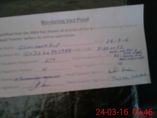 | Certified that this School was Inspected by the Undersigned MEA/DMO Today and the Information Stated Above is as Per Record. | |||||