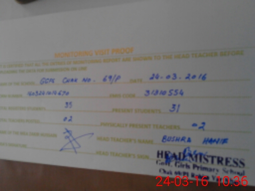 | EMIS Code: 31310554 | Name of School: GGPS CHAK NO. 69/P | |||