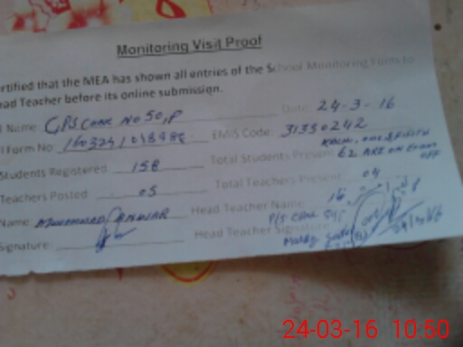 | Certified that this School was Inspected by the Undersigned MEA/DMO Today and the Information Stated Above is as Per Record. | |||||