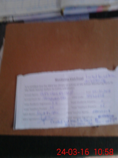 | Monitoring Date: 24-03-2016 | Start Time: 24-03-2016 10:38 AM | End Time: 24-03-2016 11:00 AM | Name of MEA: Sa**** Hu**** | |