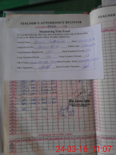 | Attendance Register | Head Teacher | MEA with School | Visit Proof |