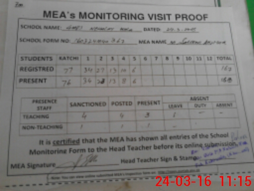 | Certified that this School was Inspected by the Undersigned MEA/DMO Today and the Information Stated Above is as Per Record. | |||||