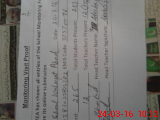 | Certified that this School was Inspected by the Undersigned MEA/DMO Today and the Information Stated Above is as Per Record. | |||||
