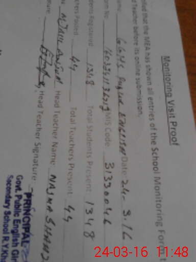 | EMIS Code: 31330046 | Name of School: GGHS PUBLIC ENGLISH MOHALLA CH. NAIKE | |||
