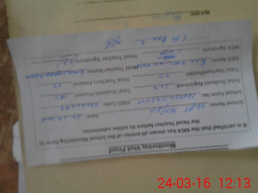 | Attendance Register | Head Teacher | MEA with School | Visit Proof |