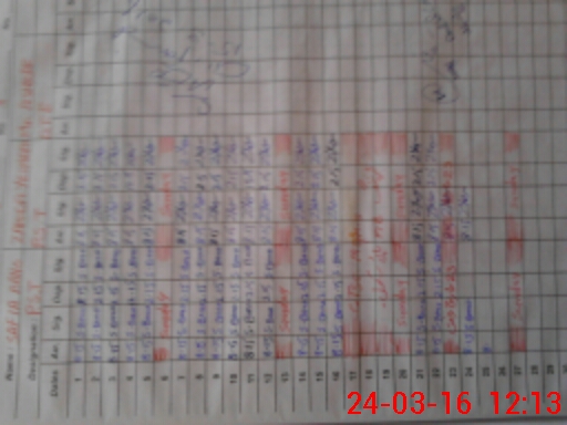 | CNIC | Full Name | Designation | R/C | Absence During Last Calender Month |