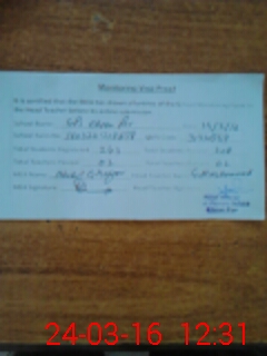 | Attendance Register | Head Teacher | MEA with School | Visit Proof |