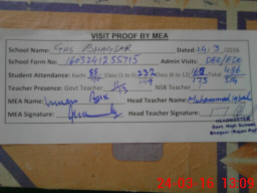 | EMIS Code: 32430012 | Name of School: GHS BHAGSAR | |||