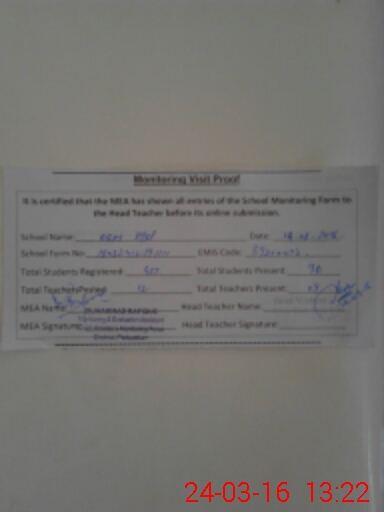 | Certified that this School was Inspected by the Undersigned MEA/DMO Today and the Information Stated Above is as Per Record. | |||||